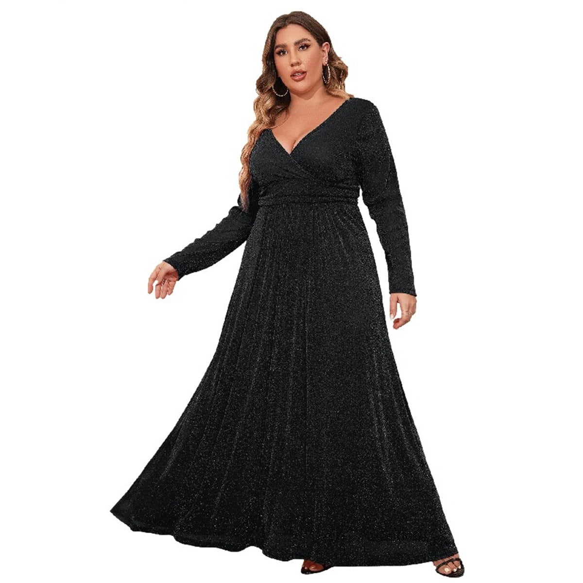 V-neck Sleeve Mesh Maxi Dress